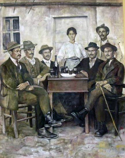 Sulla parete nord trova posto l'immagine di un gruppo di bambini del paese, ritratti in un'aia insieme ad animali da cortile; sulla parete ovest sono invece raffigurati alcuni contadini mentre riposano al tavolo dell'osteria, bevendo vino.